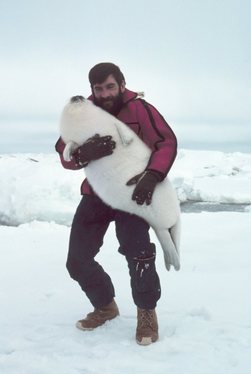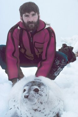 Budd Christman, we salute you! May your helicopter never grow cold. Let all who appreciate boreal fauna sing your praises. When we too have the opportunity to cuddle a ribbon seal, we will toast your name! |