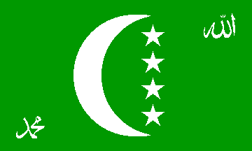 Best use of the star and crescent. Unfortunately, it depicts something astronomically impossible, namely the eclipse of the moon by a star. But perhaps it's not a star but a nuclear satellite-weapon aimed at India?